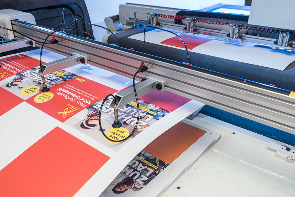 In der Weiterverarbeitung bringen unser moderner digitaler Workflow und unsere ausgebildeten Mitarbeiter Ihren Druckauftrag mithilfe computergesteuerter Maschinen in die richtige Form. Hartschaum, Aluverbund, Acryl und Co. werden gefräst. Kleber, Nähte, Keder und Ösen werden angebracht. So wird Ihr Druckergebnis zum fertigen Werbemittel!