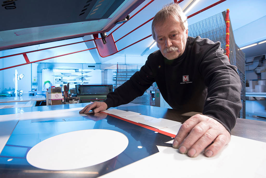 In unserem modernen Maschinenpark haben wir Halbautomaten und Großformatmaschinen, die eine sorgfältige und rasche Umsetzung Ihrer Aufträge unabhängig von der Auflagenhöhe garantieren.
