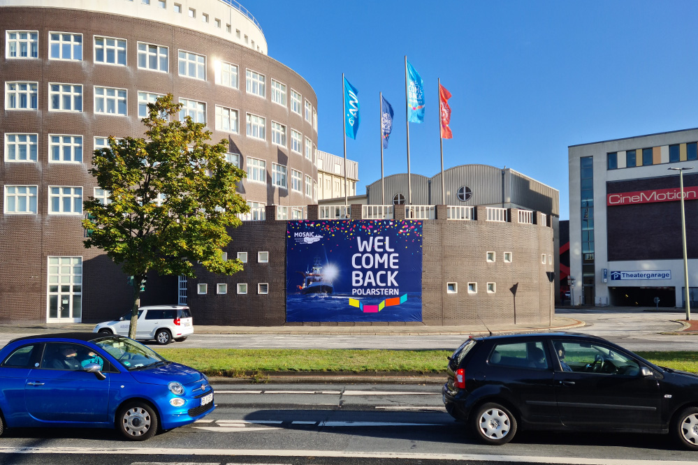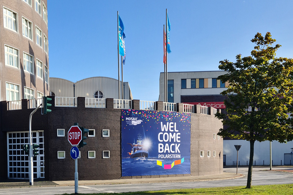 Der Forschungseisbrecher „Polarstern“ wurde am Montag, 12. Oktober 2020, feierlich in Bremerhaven empfangen. Wir haben Banner und Schilder für die Rückkehr produziert.