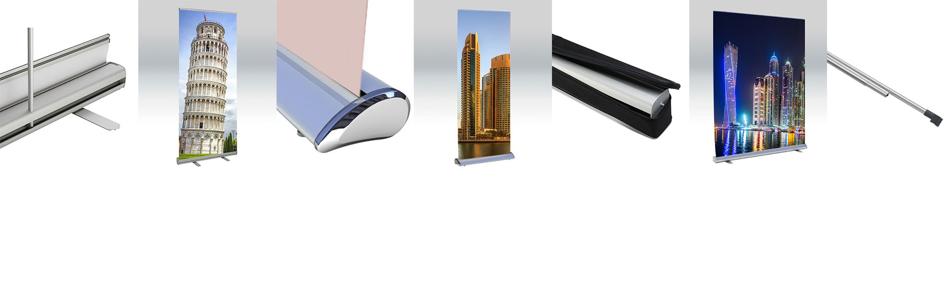 Unsere stabilen Roll-Up-Systeme aus eloxiertem Aluminium sind einfach in der Handhabung und perfekt für den mobilen Einsatz geeignet. Ob Roll-Up oder X-Banner, modernste Digitaldruckverfahren sorgen für leuchtende Farben und dauerhafte Brillanz.